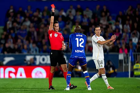 شهدت مباراة ريال مدريد ومضيفه خيتافي، ضمن منافسات الجولة التاسعة من الدوري الإسباني، واقعة نادرة أثارت جدلاً واسعًا، بعد طرد لاعب خيتافي البديل الكاميروني آلان نيوم عقب دخوله الملعب بثوانٍ معدودة فقط.
